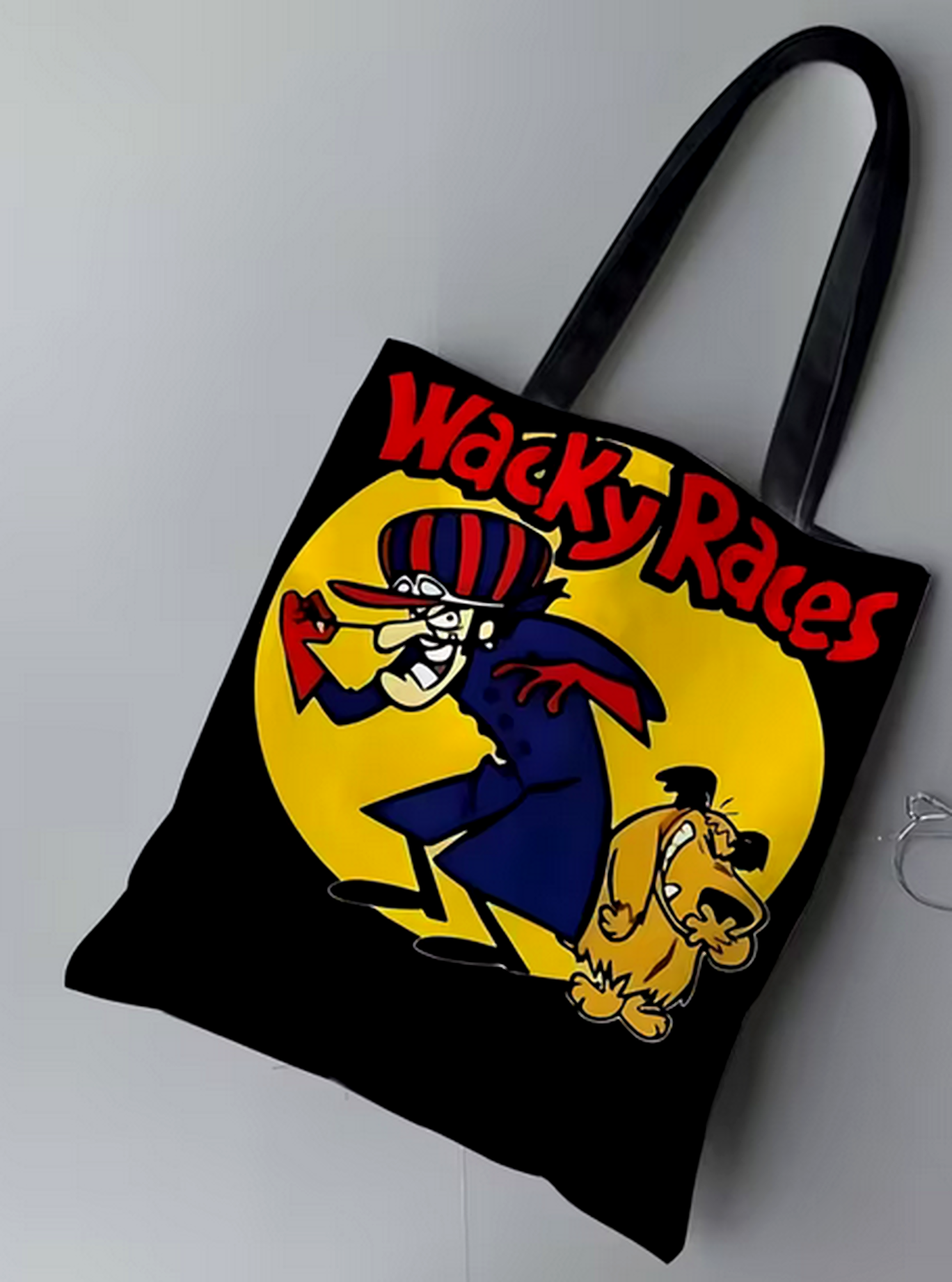 Originalissima borsa a tracolla ispirata a Dick Dastardly e al mitico cartone Wacky Races, perfetta per fan dei personaggi vintage e dell’animazione anni ’70. La grafica colorata e super riconoscibile rende questa borsa un accessorio unico, ideale per chi vuole distinguersi con stile nerd e nostalgico.