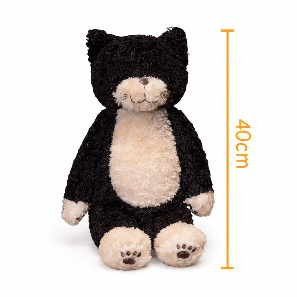 Realizzato con materiali soffici e piacevoli al tatto, questo peluche è ideale da abbracciare, utilizzare come decorazione per la cameretta oppure come regalo per ogni occasione. Il contrasto tra il colore nero e il pancino chiaro rende il pupazzo ancora più adorabile.